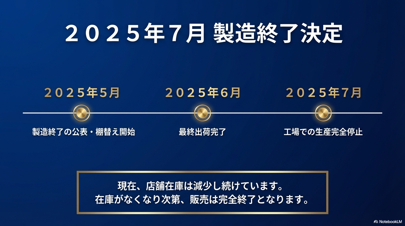 • 製造終了は2025年7月で正式に決定されている